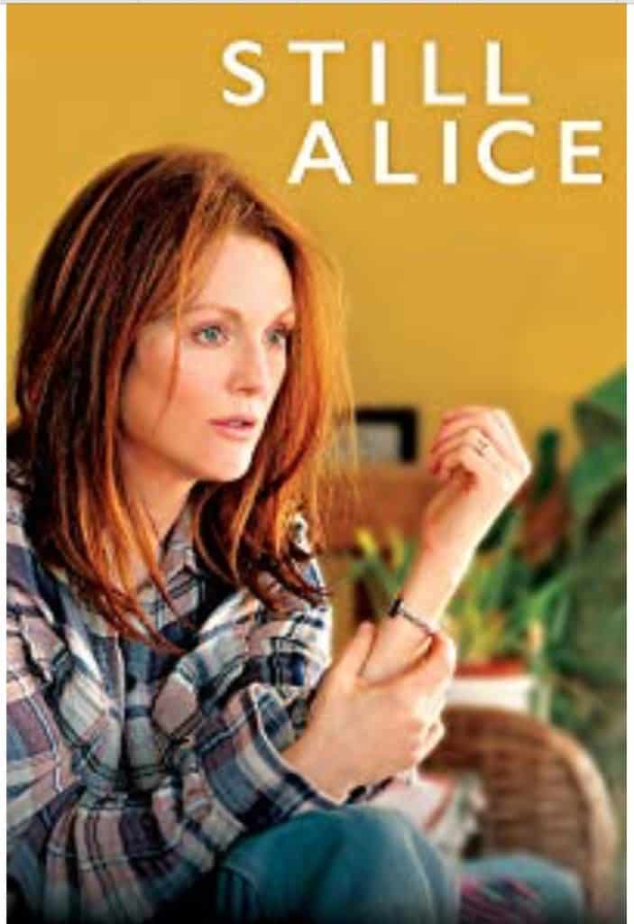 Still Alice is a movie based on the book of the same name by Dr. Lisa Genova. Still Alice is about a woman who develops early onset hereditary Alzheimer’s disease. We get to know Alice; she is smart, well-spoken, a wife, a mother, and much loved by her family.
