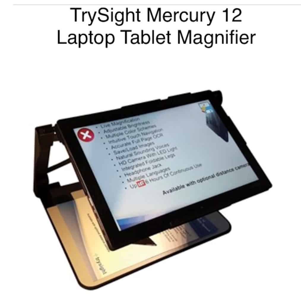 When you purchase this technology, you are purchasing the camera, control unit, and the accompanying software to load on to your laptop computer. This unit will have contrast/ brightness control, the flexibility for near, distance, and self-viewing, and magnification adjustment (now called zoom). Keep in mind, the larger the laptop or tablet screen, the greater the field of view and capability for magnification.